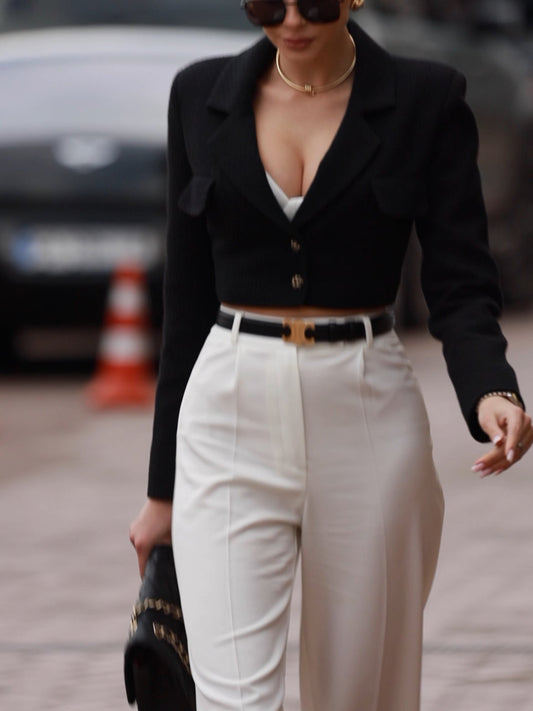 Solid Color Lapel Short Jacket & High Waist Pants Suit
