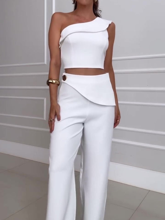 Solid Color Single-piece Vest & High-waisted Pants Set